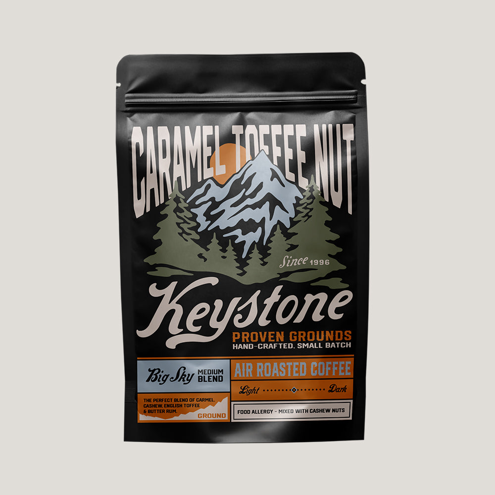 Caramel Toffee Nut brings together smooth caramel, English toffee, and a nutty backbone that holds steady from first sip to last. It is rich without being sweet. Balanced without being boring. The kind of coffee you brew before the sun comes up and trust all day. Air roasted in small batches for a clean finish and consistent flavor.